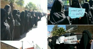 اقليم تهامة – خاص نظمت عدد من أهالي وأسر المختطفين وناشطات نسوية بإب صباح اليوم الثلاثاء وقفة احتجاجية طالبت بوقف تعيذيب المختطفين داخل سجون الانقلابيين واطلاق سراحهم . المشاركات في الوقفة التي نظمت امام بوبة المجلس المحلي بالمحافظة نددنا بعمليات التعذيب التي يتعرض لها السجناء ومنع الاهالي من الزيارة …