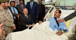 اقليم تهامة – الرياض زار الرئيس المشير عبدربه منصور هادي رئيس الجمهورية القائد الأعلى للقوات المسلحة، اليوم الاثنين ، بزيارة رئيس هيئة الأركان العامة اللواء الركن دكتور طاهر العقيلي الذي يتلقى العلاج في أحد المشافي بالعاصمة السعودية الرياض إثر تعرضه ومرافقيه لحادث انفجار لغم في محافظة الجوف .