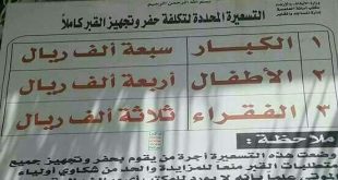 اقليم تهامة – متابعات … تداول ناشطون على نطاق واسع الثلاثاء صورة للافتة معلقة على أحد المباني الحكومية، تحوي تسعيرة محددة للقبور. وبحسب الصورة، فقد حدد الحوثيون سعر القبر للكبار بمبلغ (7000) ريال والأطفال (4000) والفقراء (3000). وحققت الصورة انتشاراً واسعاً على منصات التواصل، حيث عبر كثير من الناشطين …