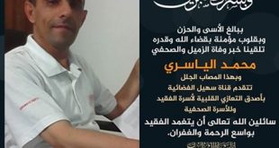 نعت قناة سهيل الفضائية الإعلامي /محمد الياسري/ الذي وافاه الأجل اليوم في محافظة مأرب بعد صراع مرير مع المرض.