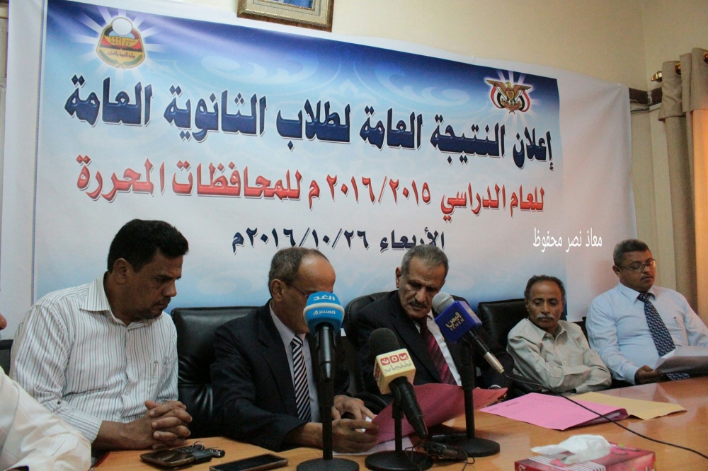 إقليم تهامة – سبأنت أعلنت وزارة التربية والتعليم اليوم في العاصمة المؤقتة عدن عن نتائج الثانوية العامة للعام الدراسي 2015م ـ 2016م في المحافظات المحررة حيث بلغت نسبة النجاح 97 بالمائة .
