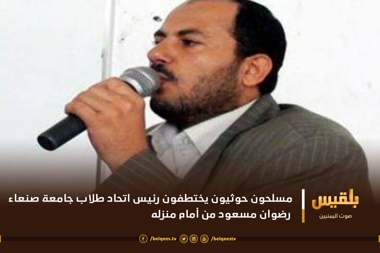 أكمل القراءة »صنعاء.. مليشيا الحوثي تختطف رئيس اتحاد طلاب جامعة صنعاء رضوان مسعود من أمام منزله