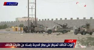 اقليم تهامة – الحديدة تمكنت قوات الجيش الوطني اليوم الثلاثاء من السيطرة على خط الحديدة صنعاء خط إمداد المليشيا بعد مواجهات عنيفة خلفت قتلى وجرحى من المليشيات بعد ساعات من تحرير المطار ومناطق واسعة جنوب مدينة الحديدة عقب فرار عناصر المليشيا إلى وسط المدينة.