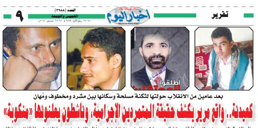بعد عامين من الانقلاب حولتها لثكنة مسلحة وسكانها بين مشرد ومخطوف ومُهان كعيدنة … واقع مرير يكشف حقيقة المتمردين الاجرامية ، وناشطون يعلنونها “منكوبة” مصادر مطلعة : استعدادات مكثفة للمتمردين في جبال كعيدنة المطلة على تهامة شملت حفر خنادق وانشاء معسكرات تدريب مواطنون : المتمردون يمارسون الارهاب بحقنا … ويتساءلون …