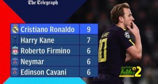 اقليم تهامة – هاي كورة لازال رونالدو في صدارة هدافي دوري أبطال آوروبا عن الموسم الحالي بتسجيله تسعة أهداف بينما ينتظره موعد جديد مع المباريات الآوروبية الليلة أمام باريس سان جيرمان في الدور الـ 16 من دوري الأبطال .
