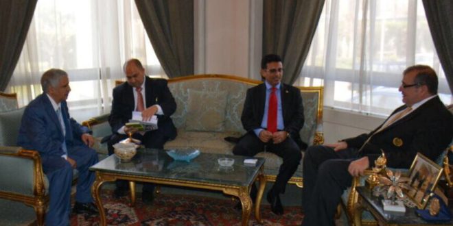 بحث سفير بلادنا لدى جمهورية مصر العربية الدكتور محمد علي مارم اليوم مع مساعد وزير الخارجية المصري لشؤون المراسم السفير أيمن عبد الفتاح العلاقات الثنائية وسبل تعزيزها وتفعيلها بما يخدم علاقات الشراكة بين البلدين الشقيقين.