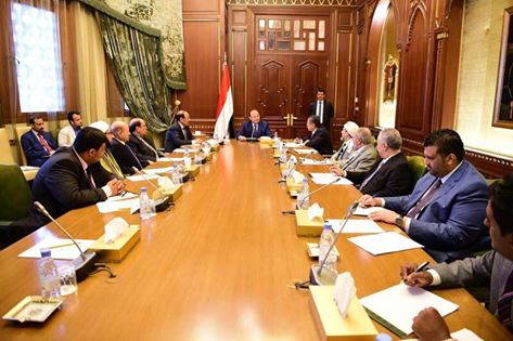 ترأس فخامة الرئيس عبدربه منصور هادي رئيس الجمهورية اليوم اجتماعا بمستشاريه بحضور نائبه الفريق الركن علي محسن صالح ورئيس الوزراء الدكتور احمد عبيد بن دغر.