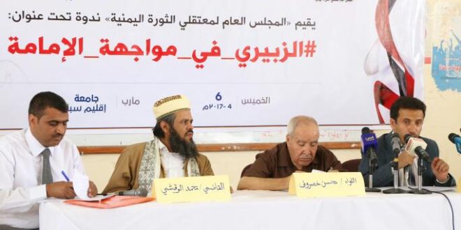 نظم المجلس العام لمعتقلي الثورة اليمنية، وبرعاية رئيس الجمهورية عبدربه منصور هادي، اليوم الخميس بمدينة مارب، ندوة بمناسبة الذكرى الـ52 لاستشهاد أبي الأحرار محمد محمود الزبيري على يد قوات الرجعية والإمامة.