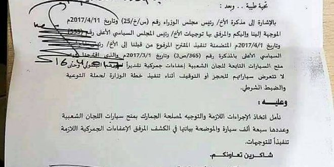 وتشير الوثائق المنشورة بشان نهب المال العام بتوجيهات من الصماد اعفاء وترسيم 7 الف سيارة للمليشيات الانقلابيه وبما يسمى الحان الشعبية التابعه للحوثيين من جميع مرافق وومؤسسات الدولة في المحافظات التى يسيطرون عليها .