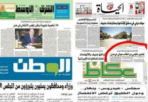 أما صحيفة الوطن السعودية فأبرزت عنوانا يقول “وزراء ومحافظون يمنيون يتبرؤون من المجلس الانتقالي” نقلت فيه المواقف الرافضة لتشكيل المجلس الانتقالي.
