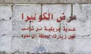 وسط ارتفاع كبير في إصابات وباء الكوليرا في صنعاء لجأت المليشيا الانقلابية لرسم كتابات جدارية زعمت فيها أن الوباء قادم من الولايات المتحدة الأمريكية.
