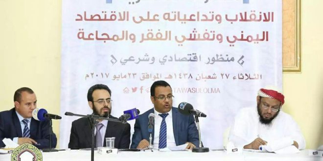 ودشن المركز الإعلامي ببرنامج التواصل مع علماء اليمن حملته الإعلامية مساء أمس الثلاثاء في الرياض والتي حملت عنوان: (مشروع الحوثي تجويع وافقار) بندوة خصصت للشأن الاقتصادي قدم فيها معالي نائب وزير الإدارة المحلية في الحكومة اليمنية ممثل اللجنة العليا للإغاثة الأستاذ عبد السلام باعبود ورقة تحدث فيها عن الجانب الإنساني وجهود اللجنة العليا للإغاثة في اليمن، وتحدث معالي نائب الوزير في الندوة أن مليشيا الحوثي وصالح نهبت 63 سفينة مساعدات كانت متجهة لإغاثة الشعب اليمني، وصادرت ما يقرب من 550 قافلة إغاثية خصصتها برامج الإغاثة الإنسانية للشعب اليمني، وأضاف نائب الوزير: إن الحوثي ينفذ أجندة خاصة لخدمة مشروع استعماري توسعي يستهدف الجزيرة والخليج، بدعم مباشر من إيران، يهدف للسيطرة على الملاحة الدولية، ولذلك فإن مليشيا الحوثي دمرت الحياة في اليمن وجعلت أكثر من 20 مليون يمني بحاجة لمساعدات متعددة خدمة لتلك الأجندة علاوة على حاجة أكثر من 24 مليون يمني للخدمات الصحية.