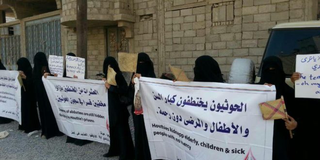 ناشدت أمهات المختطفين في محافظة الحديدة انقاذ أولادها من حر سجون جماعة الحوثي وصالح المسلحة، جاء ذلك في وقفة احتجاجية ظهر اليوم الأحد أمام مقر الامم المتحدة بالمحافظة.