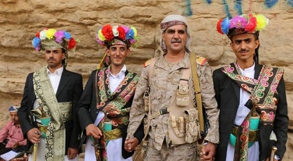 احتفل ثلاثة من منتسبي الجيش الوطني بزفافهم في فرضة نهم شرق العاصمة صنعاء .