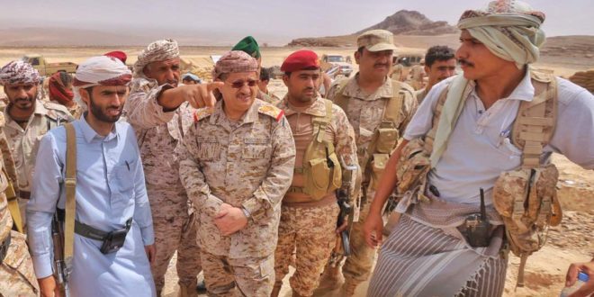 تفقد رئيس هيئة الأركان العامة اللواء الركن محمد علي المقدشي ،اليوم،وحدات الجيش الوطني المرابطة في محيط جبل مرثد شمال غرب صرواح بمأرب.