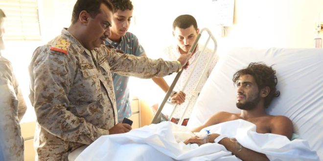 تفقد اللواء الركن عمر يحيى سجاف قائد المنطقة العكسرية الخامسة ، اليوم الاربعاء ، جرحى الجيش الوطني من منتسبي المنطقة في عدد من مستشفيات منطقة جازان .