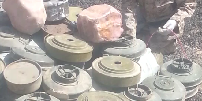 وقال: مصدر عسكري لـ” سبتمبر نت” إنه تم تفجير مئات من الألغام التي نزعتها قوات الجيش الوطني من معسكر خالد بن الوليد، وعدد من المناطق المحررة بعد أن زرعتها مليشيا الحوثي والمخلوع صالح الانقلابية التي تتقصد باستهداف رجال الجيش الوطني والمواطنين الابرياء.
