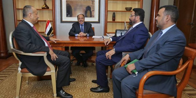 وفي اللقاء قدما محافظي مأرب وتعز شرحاً عن وضع المناطق المحررة وبعض الإشكالات القائمة.
