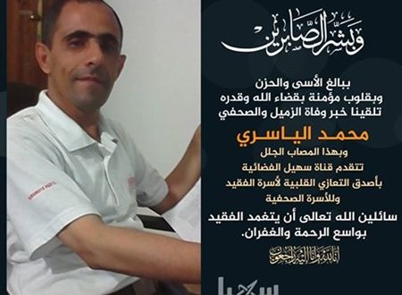 نعت قناة سهيل الفضائية الإعلامي /محمد الياسري/ الذي وافاه الأجل اليوم في محافظة مأرب بعد صراع مرير مع المرض.