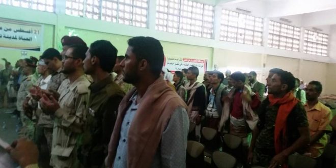 نظم التوجيه المعنوي في اللواء 17مشاة بمحافظة تعز حفلا خطابيا وفنيا بذكرى مرور عام على كسر الحصار على مدينة تعز وفكه جزئيا عبر المنفذ الغربي للمدينة.