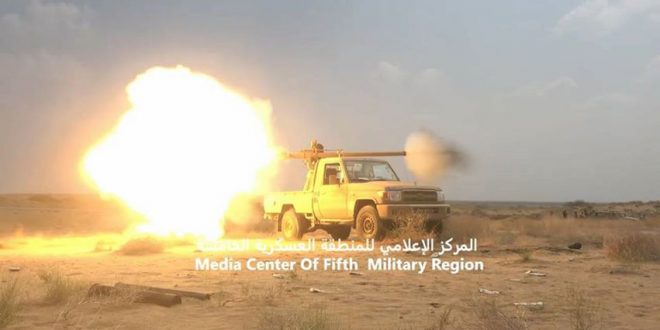 وقال مصدر عسكري للمركز الإعلامي بالمنطقة العسكرية إن المعارك مستمرة منذ فجر أمس الإثنين، حيث تمكنت قوات الجيش الوطني من السيطرة على أجزاء واسعة من وادي بن عبدالله شمال غرب حرض وسقوط عشرات القتلى والجرحى من المليشيات الانقلابية.