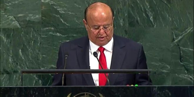 وطبقاً لوكالة الأنباء «سبأ» الحكومية، فإن هادي دعا الأمم المتحدة، في كلمته التي ألقاها بالدورة الـ72 للجمعية العامة للأمم المتحدة في نيويورك، إلى ممارسة ضغوطات على الحوثيين من أجل وصول المساعدات الإنسانية لكل اليمنيين.
