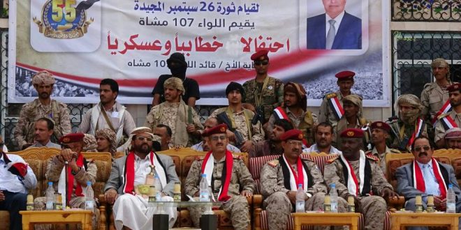 اقام اللواء 107 مشاه في محافظة مأرب صباح اليوم الاحد حفلاً عسكرياً بمناسبة الأعياد الوطنية سبتمبر واكتوبر ونوفمبر.