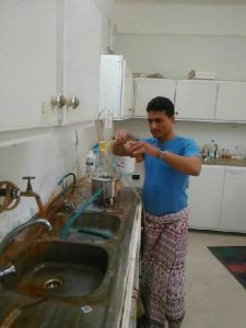وهو في أحد معامل صناعة المتفجرات قبل أيام من مصرعه .