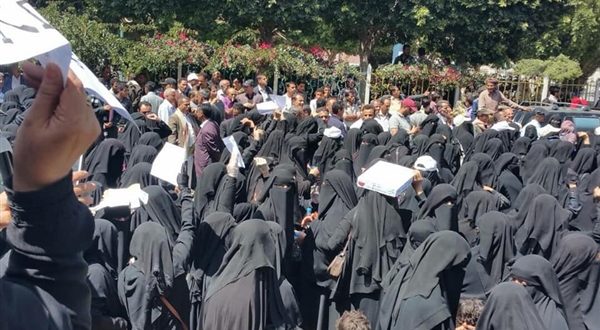 وقال شهود عيان إن الحوثيين اعتدوا على المتظاهرين ومن بينهم معلمات بالعصي، وأجبروا لمتظاهرين على المغادرة من الموقع.