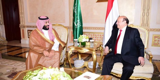 من جانبه عبر صاحب ولي العهد السعودي ،عن سعادته بلقائه أخيه فخامة الرئيس عبدربه منصور هادي رئيس الجمهورية، ناقلاً له تحيات أخيه خادم الحرمين الشريفين الملك سلمان بن عبد العزيز آل سعود ملك المملكة العربية السعودية.