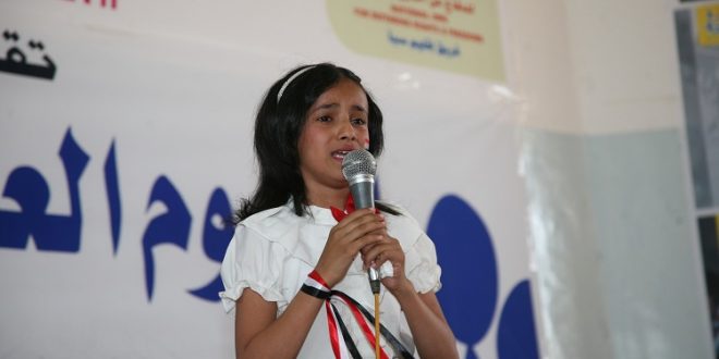 أجهشت طفلة يمنية بالبكاء، وهي تتحدث أمام مهرجان جماهيري بمناسبة يوم الطفل العالمي، عن مآسي التشرد وما خلفه عليها، بعد أن أجبرتها المليشيا الانقلابية على النزوح مع أسرتها إلى محافظة مأرب.