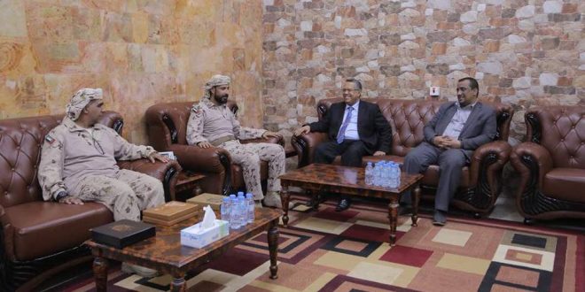 زار رئيس مجلس الوزراء الدكتور أحمد عبيد بن دغر ،اليوم، قيادة قوات التحالف العربي بعدن حيث كان في استقباله قائد قوات التحالف العميد أحمد ابو ماجد وقائد القوات الأماراتية العميد مسعود المزروعي.