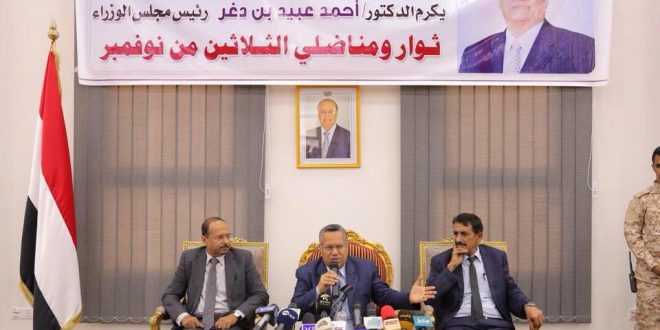 واضاف” رئيس الوزراء ونحن نكرم اليوم مناضلي عيد الاستقلال سنكرم أسرة الشهيد جعفر محمد سعد محافظ عدن الذي استشهد من اجل أمن عدن ومستقبلها، استشهد قبل عامين من اليوم ولكنه حاضرا في قلوبنا وقلوب كل ابناء عدن وسنمضي في اعادة بناء كل مادمرته الحرب الهمجية لمليشيات الحوثي وتنظيم القاعدة الإرهابيين وسنأسس لدولة مدنية يحترم فيها حق المواطنة المتساوية وسنحفظ للمواطن أمنه واستقراره”.
