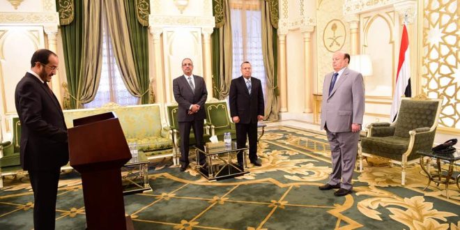 أدى كل من نائب رئيس الوزراء وزير الداخلية احمد الميسري ووزير النفط والمعادن أوس العود ووزير الزراعة والري عثمان مجلي و وزير النقل صالح الجبواني و وزير الدولة لشؤون مجلسي النواب والشورى محمد الحميري ،اليوم الإثنين، اليمين الدستورية امام فخامة الرئيس عبدربه منصور هادي رئيس الجمهورية بحضور رئيس الوزراء الدكتور احمد عبيد بن دغر.