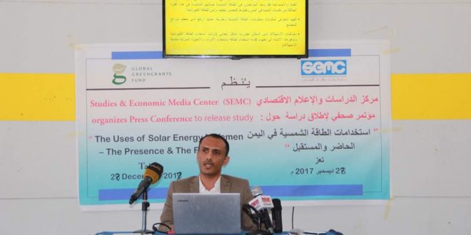 اطلق مركز الدراسات والاعلام الاقتصادي ورقة السياسات حول ” استخدامات الطاقة الشمسية ومستقبلها في اليمن ” خلال مؤتمر صحفي عقده المركز بالتعاون مع صندوق المنح الخضراء في مدينة تعز.