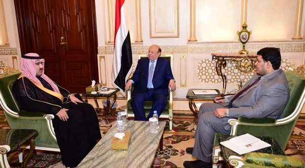 واشاد الرئيس بإسهامات المملكة وأياديها البيضاء لدعم اليمن في مختلف المواقف والظروف بقيادة خادم الحرمين الشريفين الملك سلمان بن عبدالعزيز وولي عهده سمو الامير محمد بن سلمان بن عبدالعزيز نائب رئيس الوزراء وزير الدفاع.