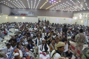 وأضاف الاحمدي : أن قيادة المحافظة حريصة على اقامة مثل هذه الفعاليات التي تهدف إلى رص الصفوف مع الشرعية ، وتدارس القضايا العالقة ومتابعة قضايا وهموم أبناء المحافظة ، مشيراً إلى أن هذا الحشد الجماهيري الكبير لدليل واضح على وقوف أبناء ريمة خلف قيادتها حتى تحرير كافة المحافظات اليمنية من سطو المليشيا ، وإقامة الدولة الاتحادية وتحقيق المواطنة المتساوية .