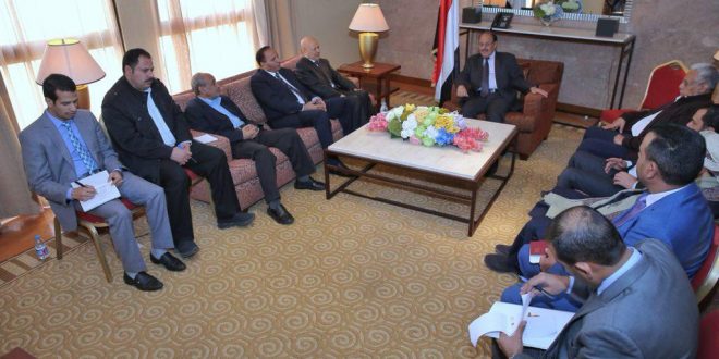 وتطرق اللقاء إلى مناقشة تكثيف الجهود للحشد خلف قيادة الشرعية بقيادة فخامة الرئيس عبدربه منصور هادي رئيس الجمهورية والاصطفاف لتحالف وطني واسع يضم مختلف القوى الوطنية الحية لمساندة الشرعية والوقوف في وجه محاولات النيل من أهداف الثورة والجمهورية.
