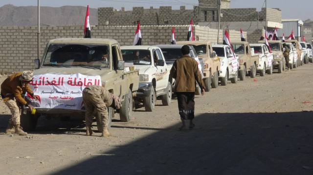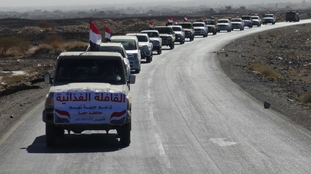 وقال السنيني إن الهدف من هذه القافلة هو تاكيدنا للمضي قدما مع ابطال الجيش الوطني والمقاومة الشعبية في