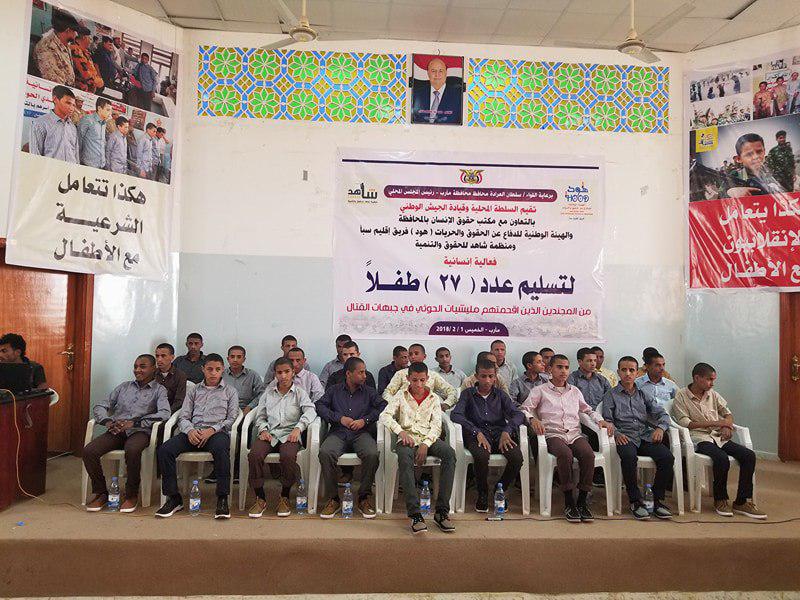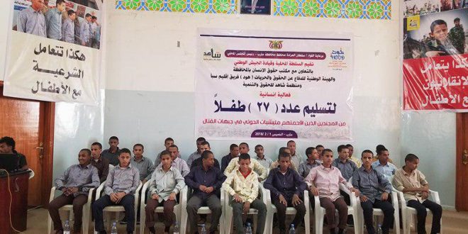 جاء ذلك خلال فعالية فنية نظمتها السلطة المحلية بمأرب بالتنسيق مع منظمتي “هود وشاهد”، وخلالها تم تسليم الـ 27 طفلاً إلى عائلاتهم، بعد خضوعهم لبرنامج تدريبي وتوعوي مكثف لإعادة تأهيلهم ودمجهم في المجتمع.