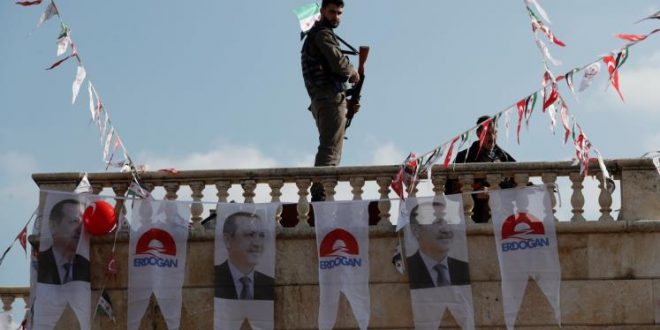 قال الرئيس التركي رجب طيب أردوغان إن السيطرة على الجبال الإستراتيجية المحيطة بمدينة عفرين شمالي سوريا قد بدأت، وإن عملية “غصن الزيتون” التي أطلقها الجيش التركي” مستمرة باتجاه المدينة حيث حقق الأخير -رفقة الجيش السوري الحر– مكاسب ميدانية على حساب مقاتلي وحدات حماية الشعب الكردية.