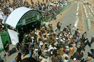 كما يخوض مسؤولو الميليشيات الانقلابية، تنافساً محموماً على تدشين أضخم مقبرة، حيث شهد اليومان الماضيان افتتاح عشرات المقابر الجديدة في صنعاء وذمار وحجة وريمة وإب، في ظل حملات “جباية واسعة” تجبر بموجبها التجار وأصحاب المحلات على دفع مبالغ مالية بالقوة لتمويل الاحتفالات وإنشاء المقابر.