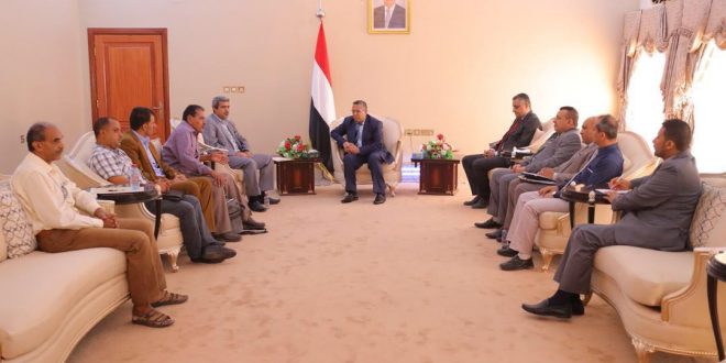 ألتقى رئيس مجلس الوزراء، الدكتور أحمد عبيد بن دغر، اليوم، في مكتبه بقصر المعاشيق بالعاصمة المؤقتة عدن، عدداً من ممثلي النقابات العامة لأعضاء هيئة التدريس في الجامعات اليمنية.