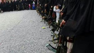 وكانت مليشيات الحوثي قد قامت بعرض عسكري نسائي في الساحات ، بمشاركة مئات الفتيات المواليات للجماعة في مجمع النصر فبمحافظة حجة ، وظهرت الفتيات مدججات بالأسلحة ، في مشهد غريب على أبناء الشعب اليمني ، ومخالف لعاداته وتقاليده وأعرافه .