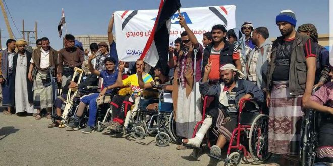 يواصل جرحى المنطقة الخامسة في مأرب، اعتصامهم وإضرابهم عن الطعام لليوم الثالث، جراء رفض المماطلة في تسليم مرتباتهم.