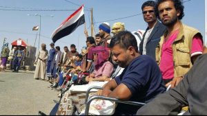 وأضافوا: “على الحدود اليمنية السعودية فقدنا اطرافنا، ووسط البلاد فقدنا حقوقنا” ، وهددوا باستمرار اضرابهم واعتصامهم حتى صرف مرتباتهم.