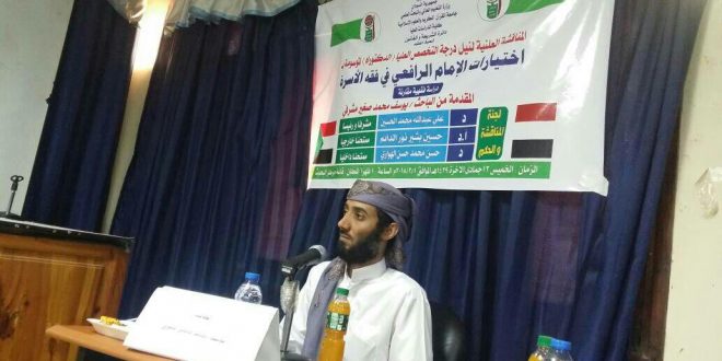 حصل الباحث اليمني يوسف محمد صغير مشرفي ، على شهادة الدكتوراه في الدراسات الاسلامية في بحثه ”