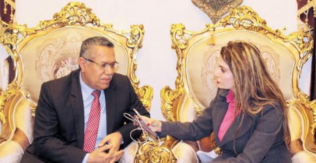 ملفات عدة وأطروحات تبشر بالأمل فى حل الأزمة اليمينة حملها لنا رئيس الوزراء اليمنى الدكتور أحمد عبيد بن دغر فى أول حوار لصحيفة مصرية، مؤكدا أن المعركة فى ميادين اليمن مستمرة ما لم يقبل الحوثيون بالحل السياسى القائم على المبادرة الخليجية والمرجعيات الثلاث، وقرار الأمم المتحدة 2216، وأشار إلى خطوة جيدة ستتخذ فى الفترة المقبلة فيما يتعلق بتوحيد أطياف حزب المؤتمر الشعبى، منوها بأن السلطة الشرعية تتقدم تجاه تحرير المناطق التى تقع تحت سيطرة الحوثيين.