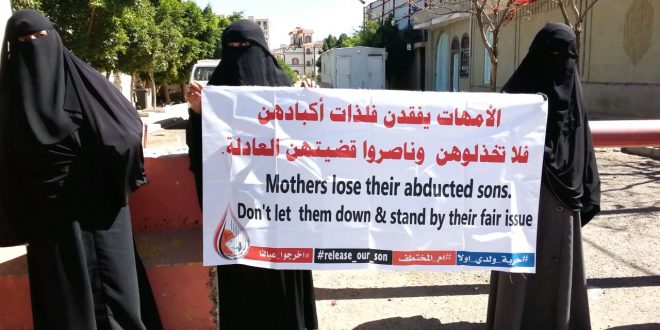 وأكدت الأمهات أن جماعة الحوثي المسلحة تقوم بحملات اختطاف ممنهجة ضد المواطنين وتعرضهم للإخفاء القسري والتعذيب النفسي والجسدي الشديدين داخل سجونها؛ حتى وصل بها الأمر لإختطاف من قد أطلق سراحه في وقت سابق.