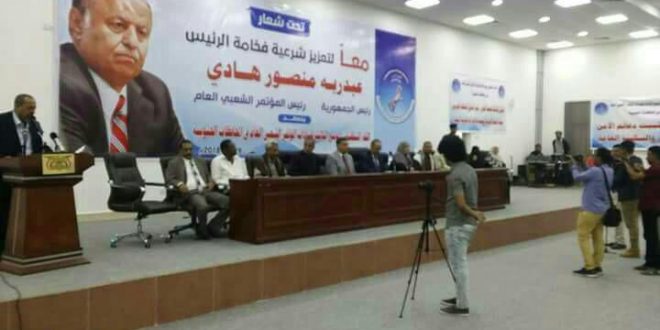 وكانت قيادات حزب المؤتمر الشعبي العام في محافظتي مأرب وتعز قد عقدت لقاءات عامة، أكدت على تمسكهم بالرئيس عبدربه منصور هادي كرئيساً لحزب المؤتمر الشعبي العام وفقا للنظام الداخلي للمؤتمر.
